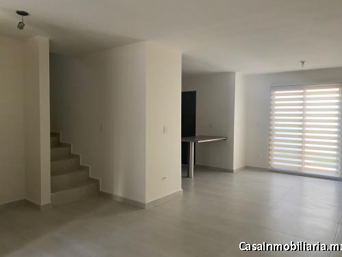 Casa en renta en privada con acceso controlado 24/7, casa club con alberca. En planta baja cuenta con cochera techada para dos autos, persianas, medio baño, sala, comedor. Cocina integral equipada con refrigerador, estufa, campana, tarja, barra desayunadora. Lavandería techada, patio trasero y pasillo lateral con puerta, Boiler de paso. En planta alta cuenta con estancia, recamara principal con vestidor y baño propio, minisplit inverter, persiana blackout. Dos recamaras secundarias con cajoneras y minisplit inverter, persianas blackout. Baño completo compartido para recamaras secundarias.