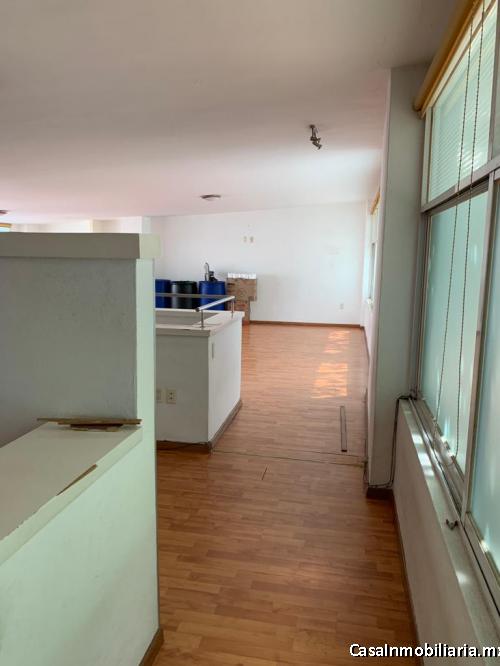 Departamento solo y único, en primer piso, tipo loft de 107m2 habitables, con espacio para Recámara con Closet, Closet de blancos, Estudio, Estancia, Comedor, Cocina Integral, Uno y medio Baños. Un lugar de estacionamiento.