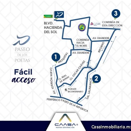 Privadas con acceso independiente y portón eléctrico; ubicado fraccionamiento al norte de Morelia, cercano al tecnológico, Club Erandeni y Universidad Lasalle. Cuenta con todos los servicios: varias rutas de transporte, bodega Aurrera, farmacia Guadalajara, Oxxo y nueva clínica 85 del IMSS.