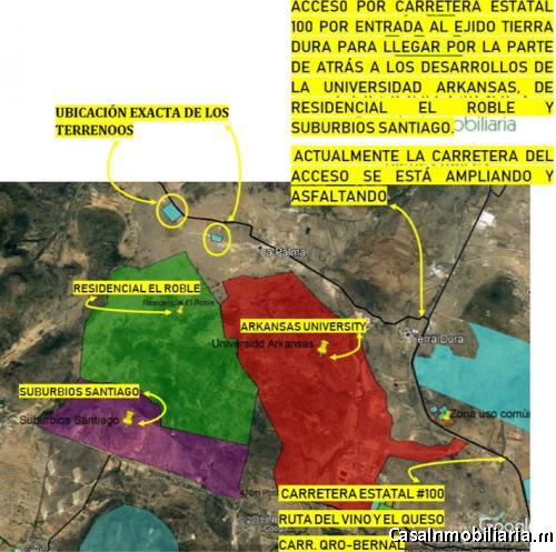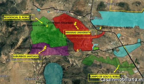 • colindando con los desarrollos de Suburbios Santiago, el roble y Arkansas University."