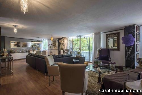 Se ha rentado para portadas de revistas y series de TV. Cuenta con amplia estancia, muy iluminada y hermosa vista al parque. Su cocina fue diseñada a la medida y está equipada con todas las comodidades. Estudio o despacho con librero empotrado de primera. Baño y balcón. Dos amplias recámaras, la principal con vestidor y baño. Cuarto de servicio con baño completo y área de lavado, así como dos lugares de estacionamiento techados e independientes.