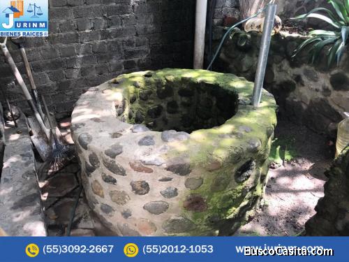 Casa en venta ubicada en 2da. Cerrada de Benito Juárez el Lagar en el poblado de San Pedro Tezompa, muy cerca de la alcaldía Tláhuac, esta edificada en tres niveles y consta de cinco recámaras, tres baños completos, tres salas, dos cocinas, dos comedores, lavadero, gas estacionario, un jacuzzi, dos tarjas, piso de loseta acrílica, cuatro tinacos, techo de losa y acabados de madera, muros de piedra, amplía área verde, espacio de estacionamiento para 8 autos, cancha de squash y/o tenis, biblioteca, un auditorio, una cava, tapanco, aljibe, servicio de energía eléctrica con dos hilos y dos tomas de agua potable , cuenta con fosa séptica.